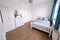 Fully furnished with a double bed, wardrobe, and desk