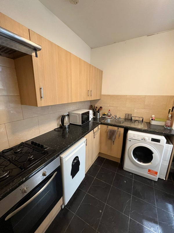 * fridge, plus usual kitchen appliances e. g. microwave, toaster, kettle, new plates cutlery mugs etc.