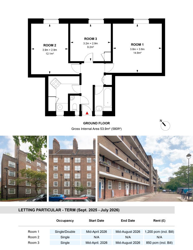 The property is fully furnished, providing three bright bedrooms, an enclosed kitchen, a bathroom, and a separate WC. All rooms are equipped with furniture and are available from mid-April.