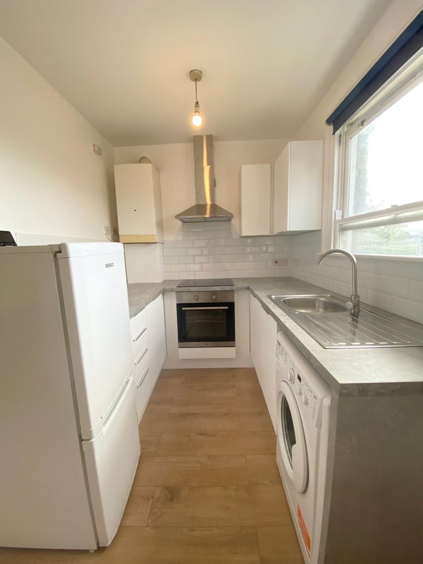 The flat comes unfurnished but features a well equipped kitchenette containing a cooker with hobs, a washing machine and a large fridge/freezer.