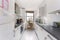 The flat features a cosy living room and an open-plan kitchen, creating a relaxed and social space to cook, unwind, or have a chat after work.