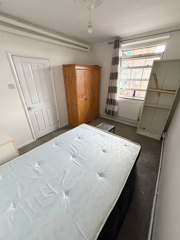 Room comes furnished with a bed and wardrobe.