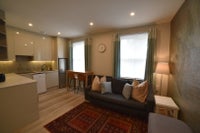 This refurbished flat is on the 1st floor of a beautiful Georgian home with automatic outdoor lighting and Banham locks with lockbox.