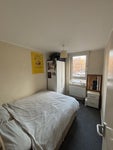 Room has double bed, spacious wardrobe, drawers and mirror as well as extra storage under the bed. Kitchen and living area are open plan with clean appliances. There’s also a lovely garden space perfect for BBQ’s outside in the summer!