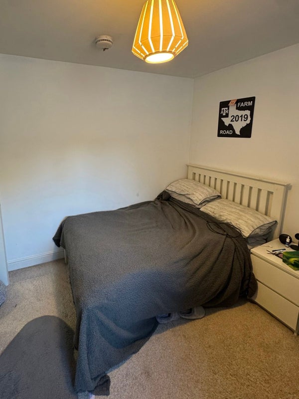 The room is a spacious double with its own en-suite, and what I’ve always loved is how private it feels. It’s set slightly away from the main living space and accessed via a small hallway, so it doesn’t feel like a typical flatshare setup.