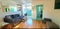 A light and modern living space, newly refurbished throughout, with a huge open plan living room with parquet wooden floor, a four seater sofa bed with chaise longue, and a six seater eating area. Superfast Broadband Fibre Wi-Fi with a separate office space.