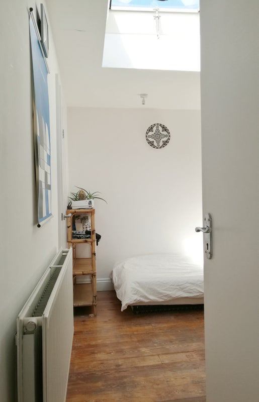 It is quiet place as it is a top floor (with great views to the city(Canary warf, Shard, all those..!)) and next to the marshes and fields. Has just one side wall with my amazing neighbor. It is super bright as it has several skylights and also it offers completely private space as it doesn't face to any neighbor around.