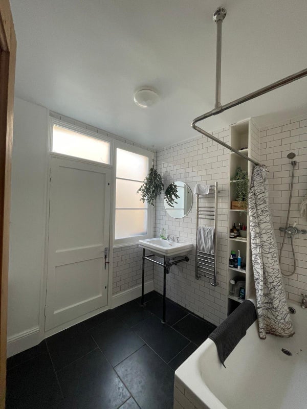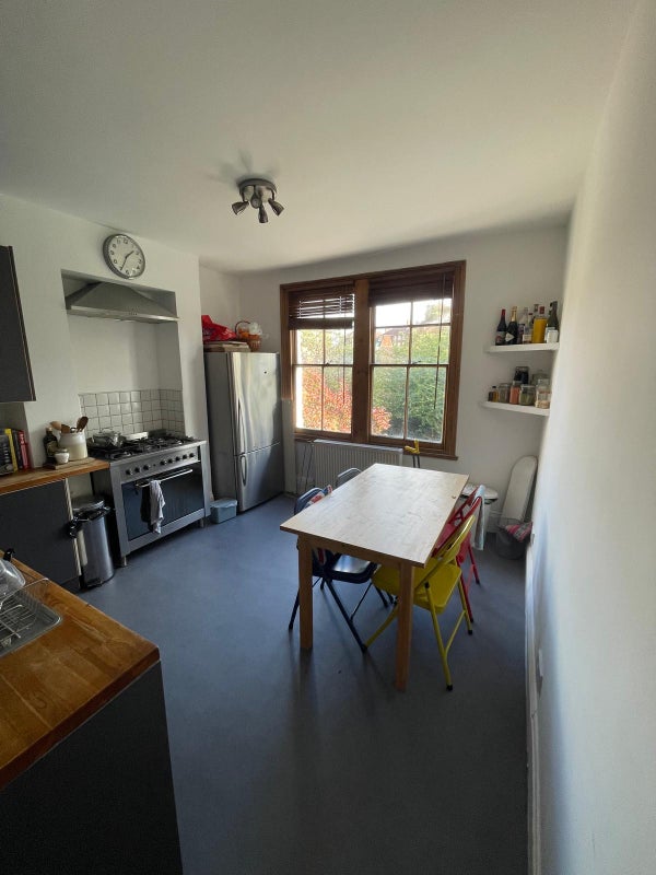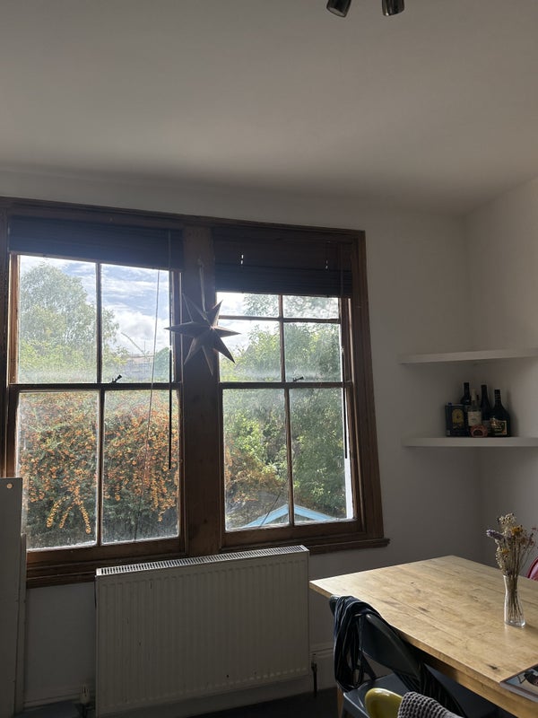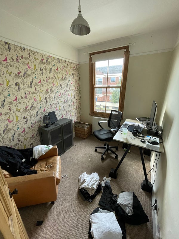 The larger bedroom is available which can fit a big desk in, and comes with a wardrobe and lots of storage space, however new tenant will need to potentially buy a bed. Bills come to about £140. Flat is warm, cosy and kitchen appliances are all super modern, including dishwasher. No living room but a mini study and kitchen dining table.