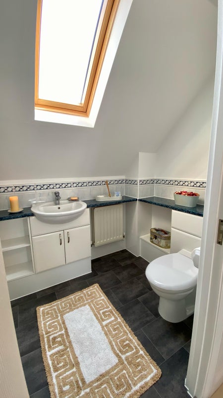 The house has two en-suite rooms, plus one shared bathroom with shower and a separate toilet with basin.