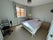 Room is furnished with modern clean furniture with a double height double cupboard.