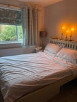 Room 1: large double room, comes furnished with a double bed, under bed storage drawers for bedside tables, kallax storage unit and built in closet space with both hanging clothes storage and 3 big drawers. Lovely soft new carpet and large window with custom made blackout blinds and curtains. Plenty of room to add your own things as well.