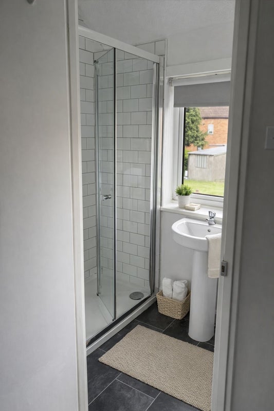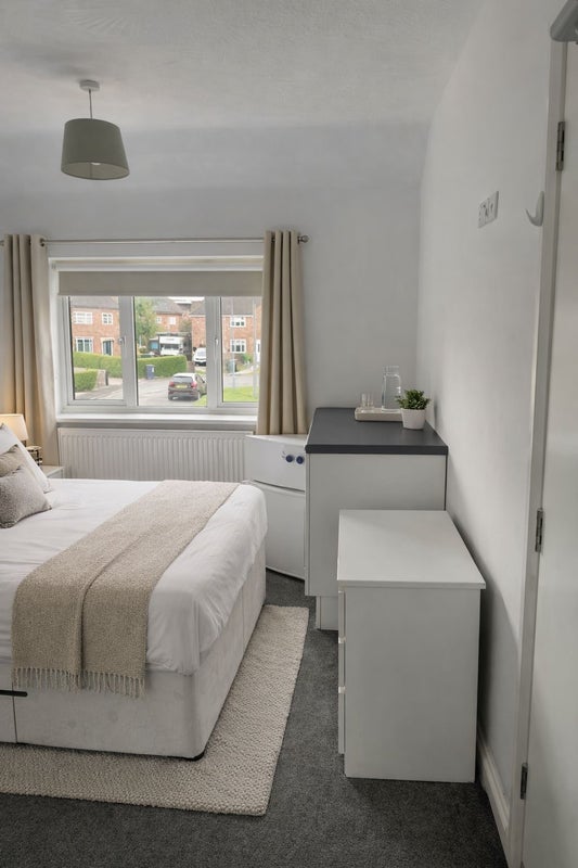 A modern en suite double room is available in a well-maintained professional house share in Corby.