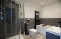 the remaining room has a larger ensuite including a bath and shower and has a velux window as well as a main window. This room is available for single occupancy.