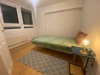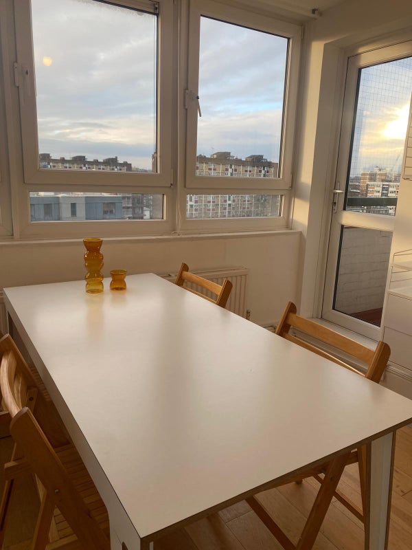 The flat is in an ex local authority building on the 7th floor which gives it great views!. The room offered is a double bedroom with built in cupboard space. There is a large lounge and kitchen and a small bathroom and a separate toilet. The flat comes furnished and is available from 1 June. Often you will be the only occupant(s) in the flat so it will feel like having your own 1 bedroom flat. The other room is used occasionally by us. We live in Denmark, and occasionally one of us travels over to the UK and uses the other room for a few days here and there. We both work as consultants (finance and charity governance).
