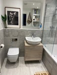 - Refurbished bathroom with bathtub/shower and toilet. LED lights. An electric socket for a shaver/electric toothbrush.