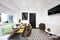 - Kitchen/dining area with dining table, chairs and smart TV