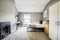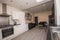 Shared Living room and Kitchen with leather sofas 50" TV, Dining table and chairs. The Kitchen has all appliances, new gloss kitchen cupboards and gas hob.