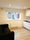 The property features two contemporary bathrooms (one on each floor), a fully equipped kitchen with oven, grill, multiple fridges, microwave, and a dining area. There is also a separate lounge/utility room with ample storage, a washing machine, and a sofa.
