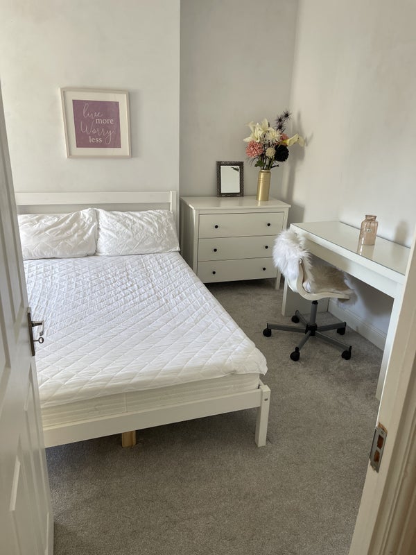 Large double room available immediately for professional person, in recently refurbished mid terrace house. The house has recently had a new roof and a new boiler, so nice and cosy.