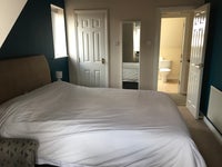 ROOM 1 : Generous king-size primary bedroom with sole use of en-suite shower room plus a huge walk-in wardrobe (3.5m x 1.5m), desk/chair and an armchair nook. View is of the street. You'd have the entire top floor to yourself.