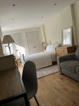 Hi, I have a large, comfortable double bed/sitting room (single occupancy) with its own external access and parking at our south-of-the-river detached house a 20 minute walk from Stratford town centre.