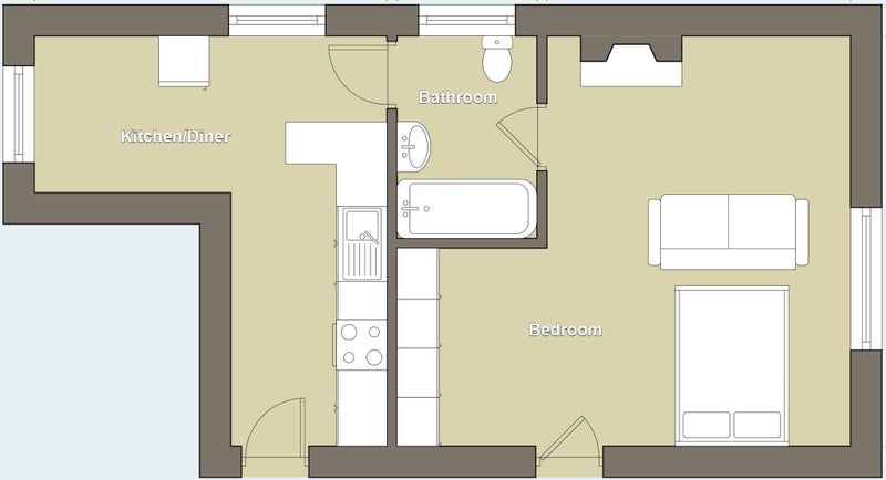 User-friendly guest kitchen connected to en-suite room, making the entire set up more like a studio flat. Most of the time the kitchen is solely used by lodger. Lounging area within kitchen.