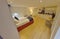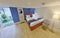 The studio comprises a king size divan bed with drawers underneath, wardrobe, armchair, full-length mirror, bistro table and chairs, flat screen Smart TV