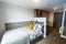 This bright, modern, huge (up to 19.53m2) room comes with a ¾ double bed which incorporates a headboard with clever storage and charging points so you can charge your phone whilst in bed. Each room comes with a wardrobe, shelving, long desk with extended shelving, chair and has large windows which bring in a lot of natural light. It is also en suite with a WC, shower, sink and accessories so no need to queue and argue about using the bathroom. In your flat is also a living area where there is a table, chairs, sofas, fully fitted sleek, modern kitchen and TV. A great place to hang out with your friends and flatmates. Available in clusters of 4 & 6 on the ground and first floors. Numbers are limited so be quick to book one!