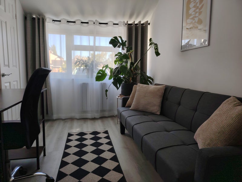 Hello, we have an en-suite bedroom with a small kitchenette available for rent, suitable for a friendly person. The house is located 10 minutes from Coventry city centre, in a very quiet cul-de-sac. There is a parking space and a private garden.