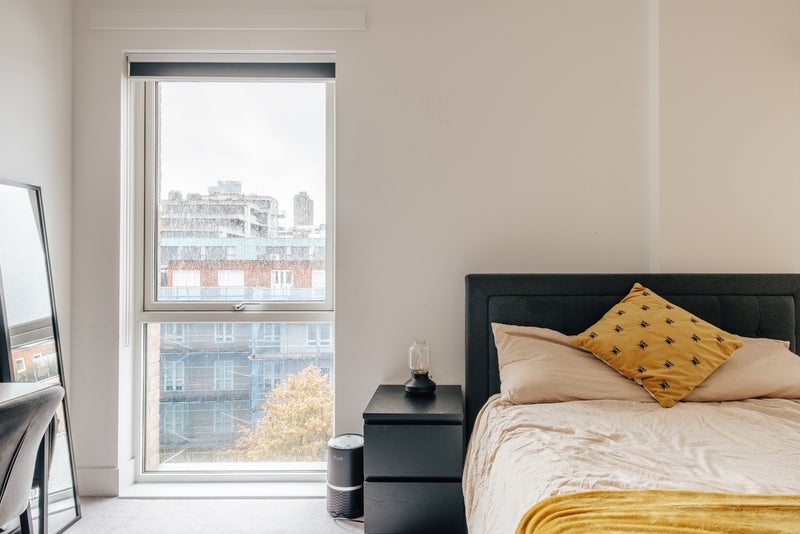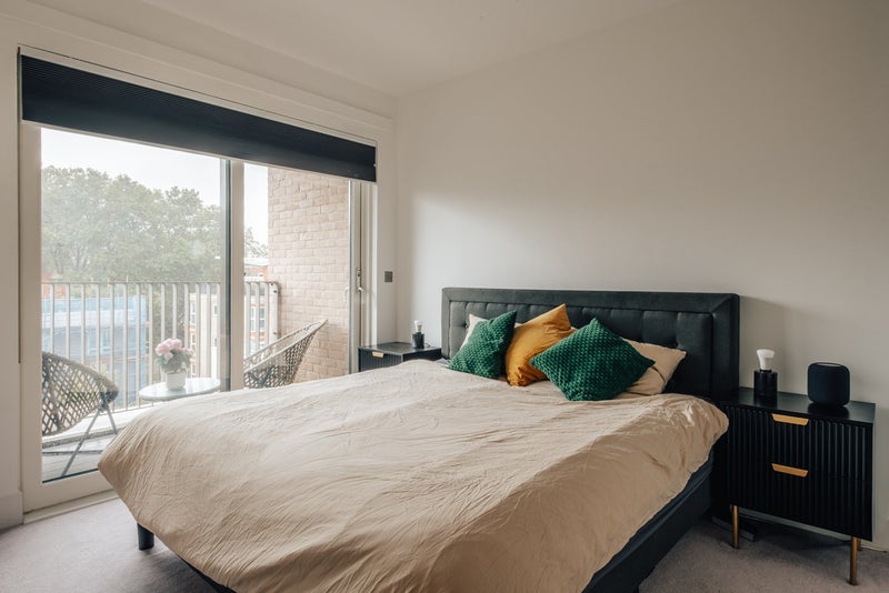 It’s a bright, modern flat on Lever Street, about 80 sqm, with an open-plan living space, floor-to-ceiling windows, and two balconies with amazing views over London. You can see The Shard and St Paul’s from the flat, and it also overlooks King’s Square Park, which makes it feel a lot calmer than most places this central.
