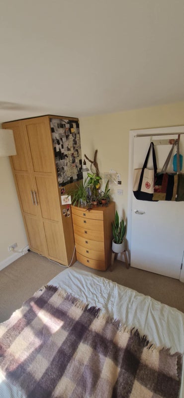 The room is furnished with a bed (with new mattress), massive wardrobe, chest of drawers, and bedside table. There is also a storage drawer under the bed and shared storage in the hall. Bills are~£55/month not including council tax (I believe council tax is ~£90 if you aren’t exempt).