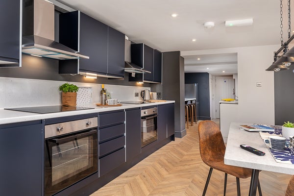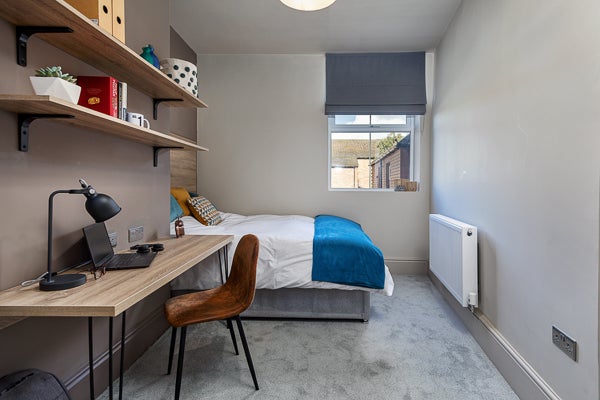 🔑 Extra large rooms - double bed, built-in wardrobes, deskspace, shelving, nightstands, blackout blinds.
