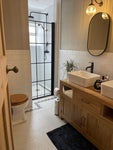A comfortable shower room downstairs is located near the room, which is also downstairs. With additional bathroom upstairs.