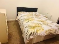 A furnished double room available in a 2BHK flat. Separate bath and toilet for this room. Shared living room and kitchen.