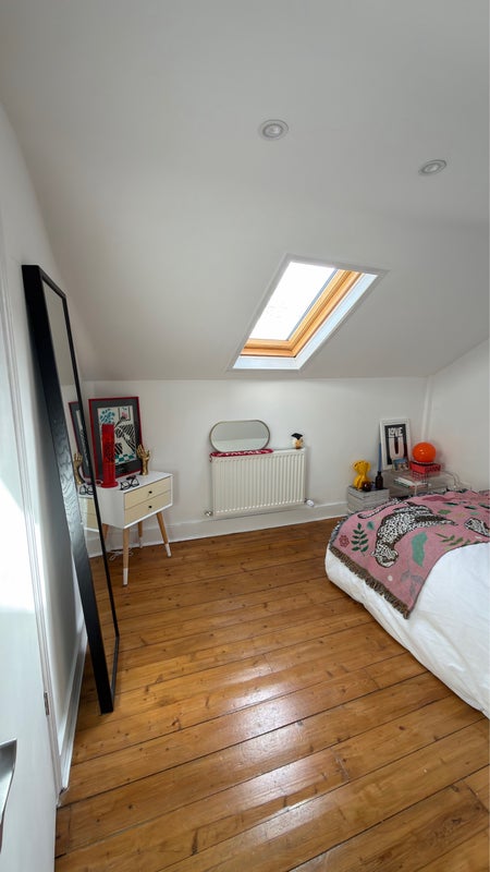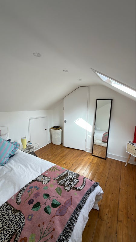 This Double Room is located in a flat in the upstairs of a gorgeous house. The room is full furnished (bed, wardrobe, bedside tables, mirror, everything you’d need)!