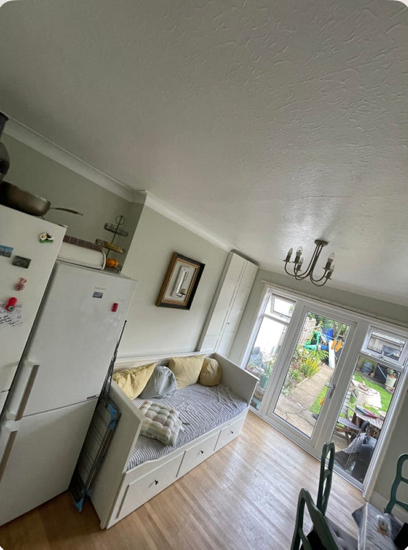The room is freshly painted and brand new carpet fitted in a well maintained house with lovely garden, lovely neighborhood, nice and calm area. Large shared living room, the fridge freezer to be shared with only 1 person.
