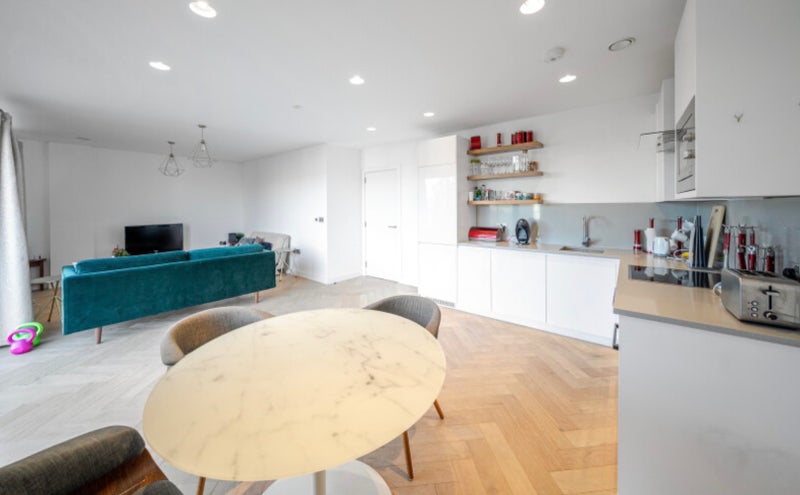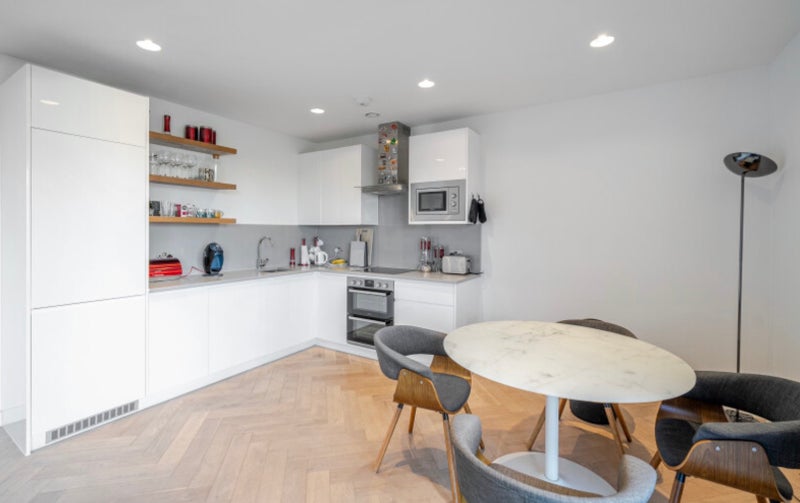 A spacious 3 bedroom 2 bathroom PENTHOUSE APARTMENT of 1,027 sq ft with floor to ceiling windows overlooking beautifully landscaped gardens, a tree-lined courtyard and facing an outdoor heated swimming pool. The apartment benefits from a large open plan kitchen/living room bringing you the best of modern urban living.