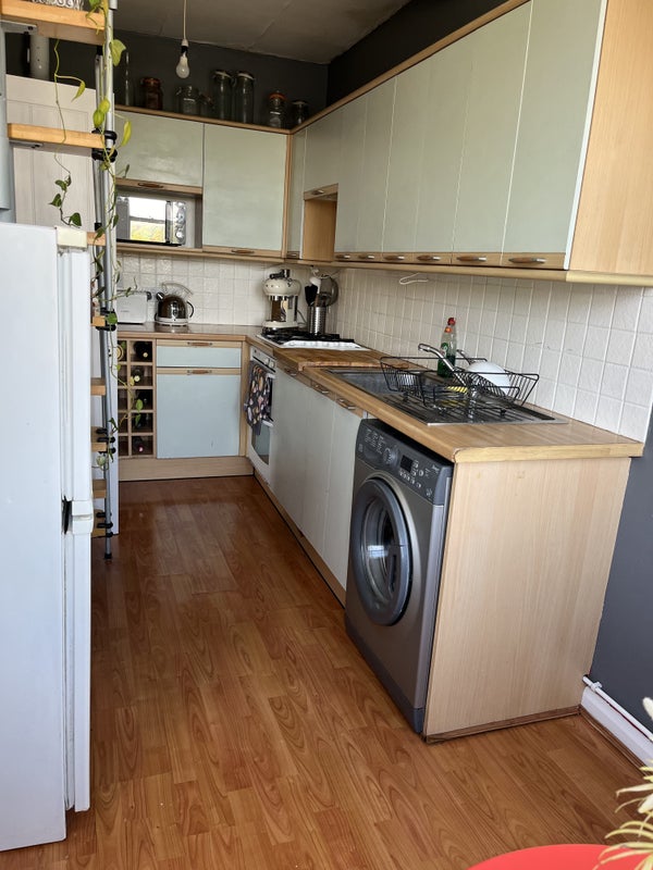 The flat is super spacious with a dining table in both the kitchen and the living room. There is also loads of storage with huge wardrobes, loads of kitchen cupboards and a huge hallway cupboard.