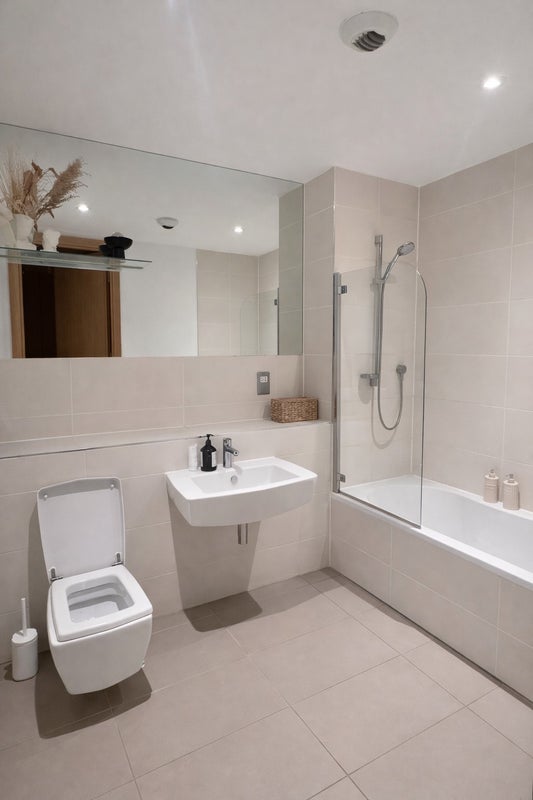 This is a two-bedroom, two-bathroom flat (no additional occupants). One room is an ensuite, the other has its own private bathroom. I am flexible and can live in either room.