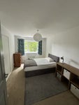There is a large kitchen with the usual appliances. A large living / dining room. The bedroom being let is 4m x 3m, and is currently furnished with a double bed, chest of draws, bed side draws and a large fitted wardrobe. If you have your own furniture the room can be cleared.