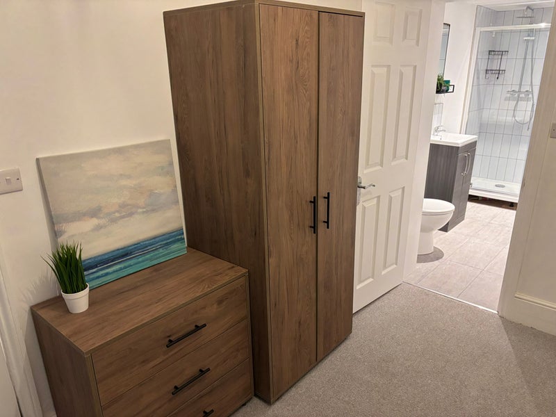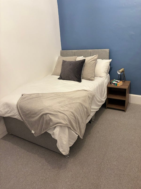 The room has loads of natural light and is fully furnished with a large double bed with mattresses, wardrobe, chest of draws, desk and bedside cabinet. The bedrooms has its own private ensuite where the finish is of a high standard and the shower system allows for high usage without noticing a change in the water pressure.