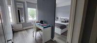 The room is presented to high standards and comes fully furnished with a double bed and orthopedic mattress, bedside table, 3m wide wardrobes, a work desk and chair, and blackout curtains.