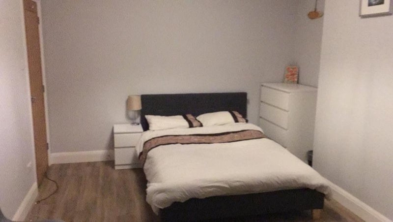Newly refurbished room and is fully furnished, with large wardrobe, chest of draws, mirror, desk, chair, new bed and mattress and a bed side cabinet with lamp. The room is very bright and spacious.
