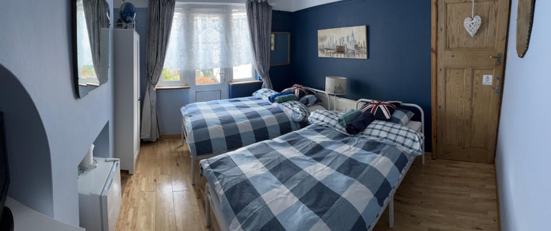 why not stay with us in London for a short while, so you can "hunt" for a more permanent place to live