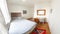 The rooms are neutrally decorated, with a double bed, chest of drawers, wardrobe, sofa, desk and a bedside table.