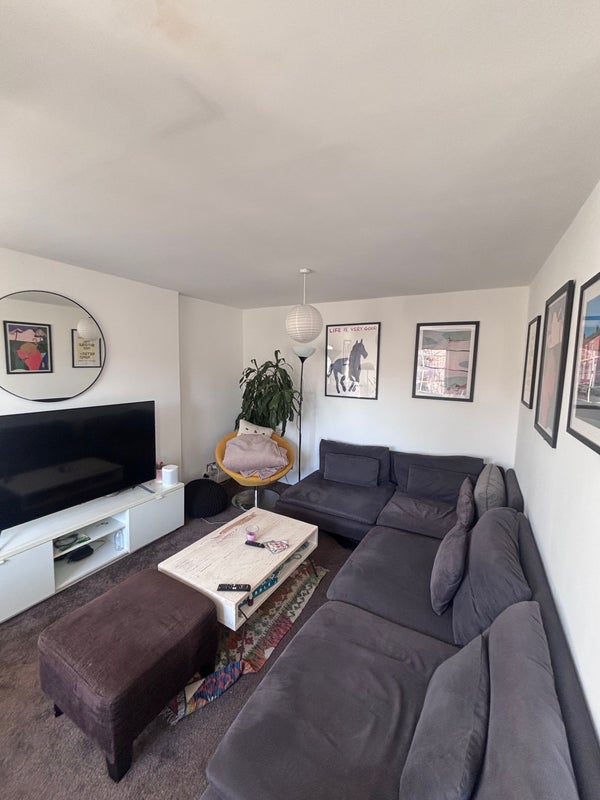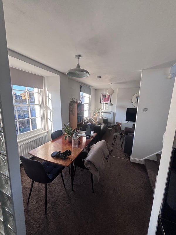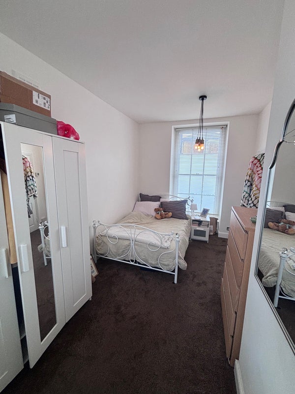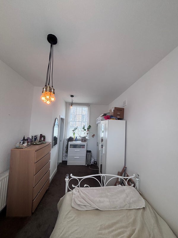 The room is spacious, fully furnished, and has its own bathroom, so you’ve got a bit of privacy from the rest of the house. It gets loads of natural light and has lovely high ceilings and huge windows on either end .
