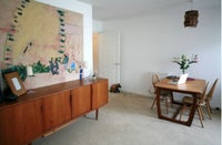 The flat is bright and peaceful, has large living room, separate kitchen in a bright sunny flat, super fast broadband, washing machine etc. A large hallway separates the rooms. Separate big bright dining kitchen with usual appliances, washing machine etc and a table and chairs with enough room to sit and eat. The place is kept clean and tidy and a cleaner who comes to add the extra sparkle to the flat twice a month.