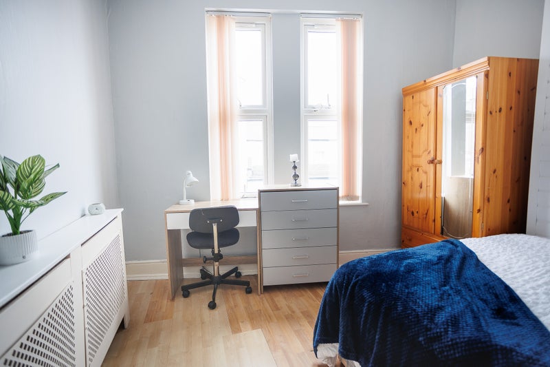 • Double Bed, Double Wardrobe (some have built-ins), Chester Drawers, Desk and Chair, Lamp
