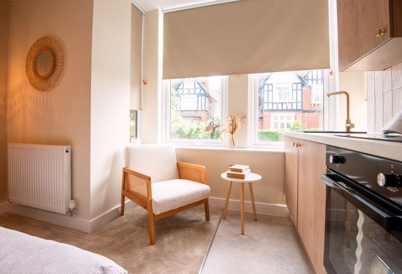 🛏️ Single and double occupancy studios with fully equipped kitchenettes