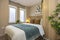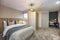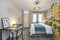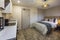 -Furnished with a wardrobe, chest of drawers, desk, and chair